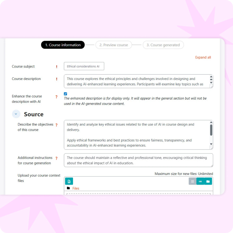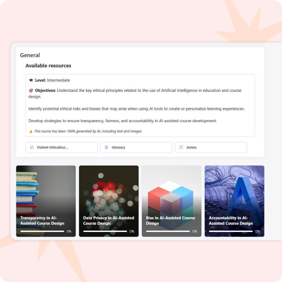 Generate amazing resources and activities for your Moodle course in just a few clicks.